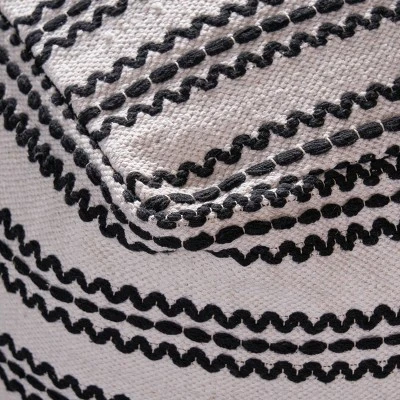 Soft, inviting, and low-to-the-ground, this Christopher Knight Home Chukar Contemporary Large Square Cotton Pouf is perfect anywhere you need a casual seat or footrest. Its unique design and universally flattering color palette serve as an excellent finishing accent to a home of any style. Black cotton is woven into a vibrant and modern stripe pattern over natural beige. Use this pouf as an easy-going accent anywhere in your home – perfect for the bedroom, living room, or any other room that stands to benefit from a light-hearted touch of personality.