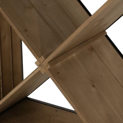 Whether you are an at-home sommelier or just into wine tasting, our wine rack has you covered. Our floor wine rack offers your home a sleek, sophisticated look that will hold your wine bottles and more with ease. Featuring space for fifteen bottles, a wine glass rack with five slots, and a cross-section to stack more bottles, this minimalistic accessory is any wine lover’s dream. With a chic metal frame contrasted by a gorgeous wood look, this wine rack offers a stunning modern industrial look for your interior space.