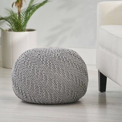 Hershel Modern Knitted Cotton Round Pouf – Christopher Knight Home