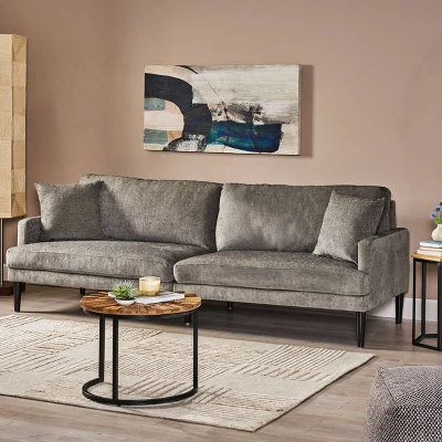 Malverne Contemporary 3 Seater Fabric Sofa With Accent Pillows Gray/Dark Brown – Christopher Knight Home
