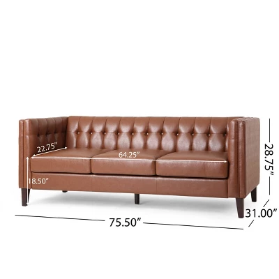 Pondway Contemporary Faux Leather Tufted 3 Seater Sofa – Christopher Knight Home